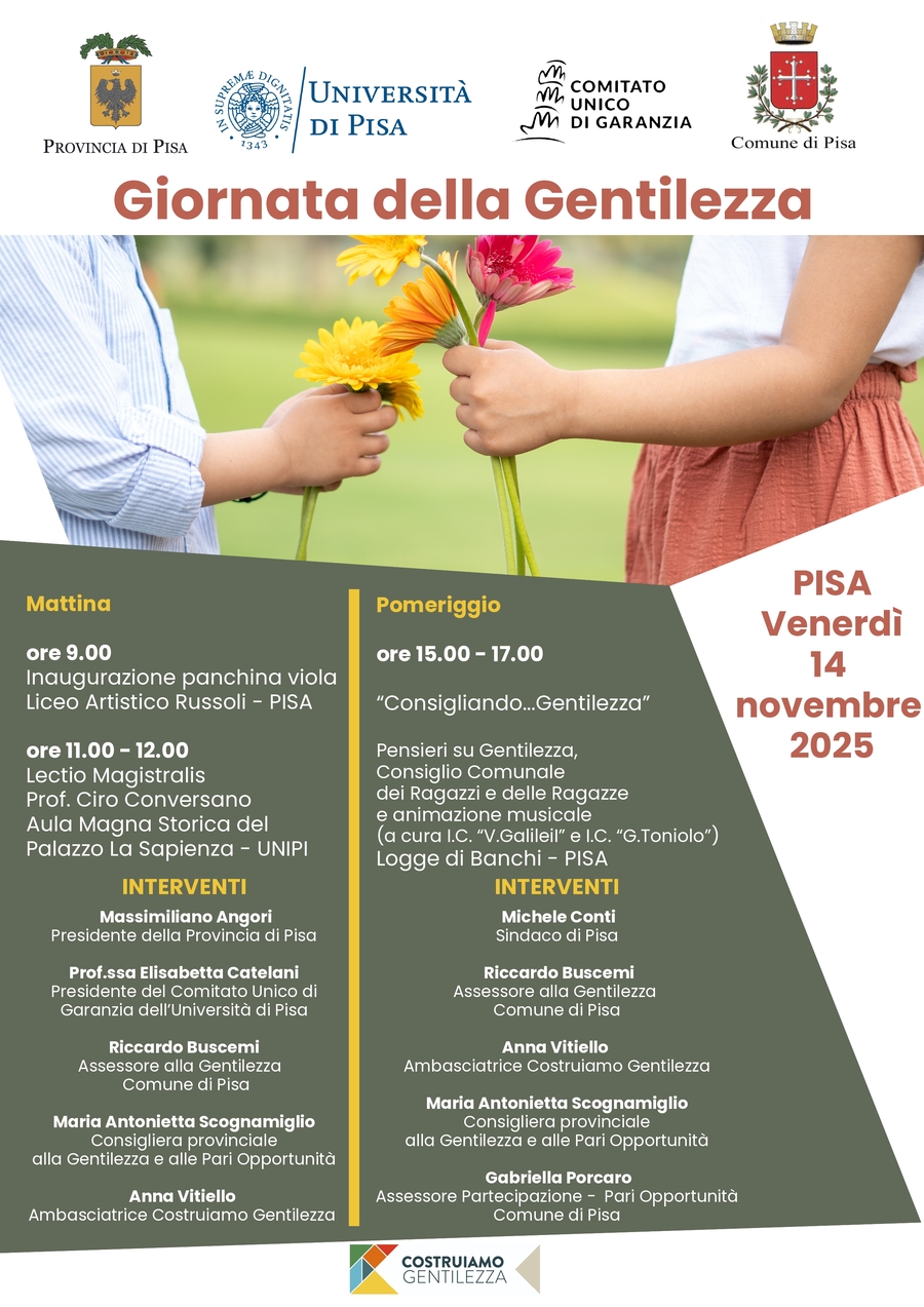 Venerdì 14 novembre si svolgeranno a Pisa una serie di iniziative in occasione della Giornata della Gentilezza 2025.